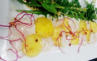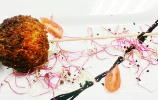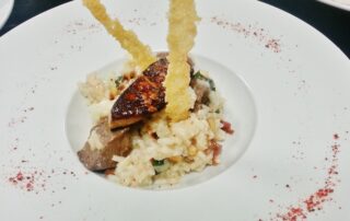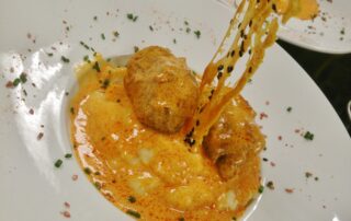 Joues de porcs confites façon pot au feu, crème de chorizo et purée fine à l’huile d’olive extra vierge.